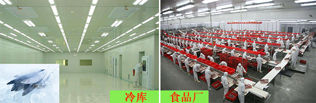 工廠車間、辦公室、食品廠、冷庫、商場、超市、紡織廠、防腐等場所的照明。