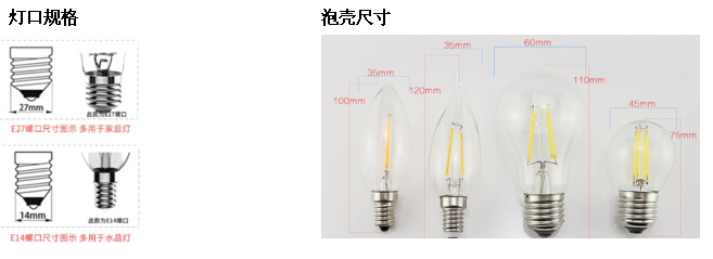4.國(guó)際通用E27 E14燈口,標(biāo)準(zhǔn)泡殼完全替代傳統(tǒng)鎢絲燈泡