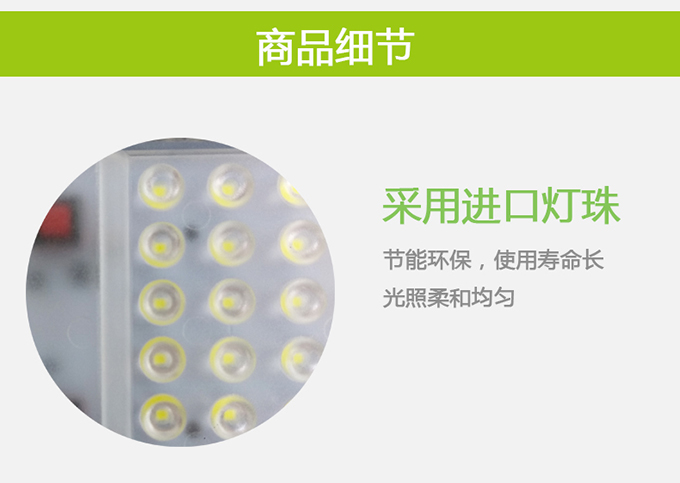 1、采用進口燈珠,節(jié)能環(huán)保,使用壽命長,光照柔和均勻