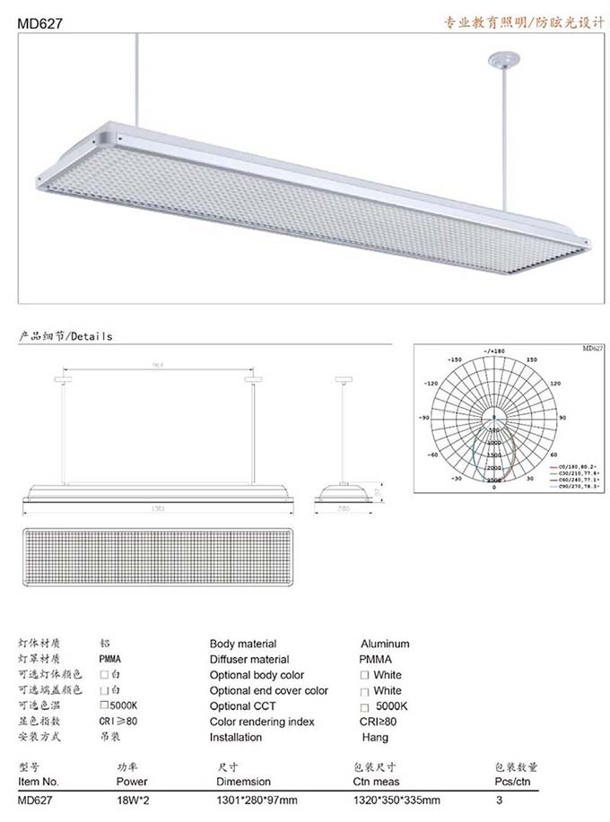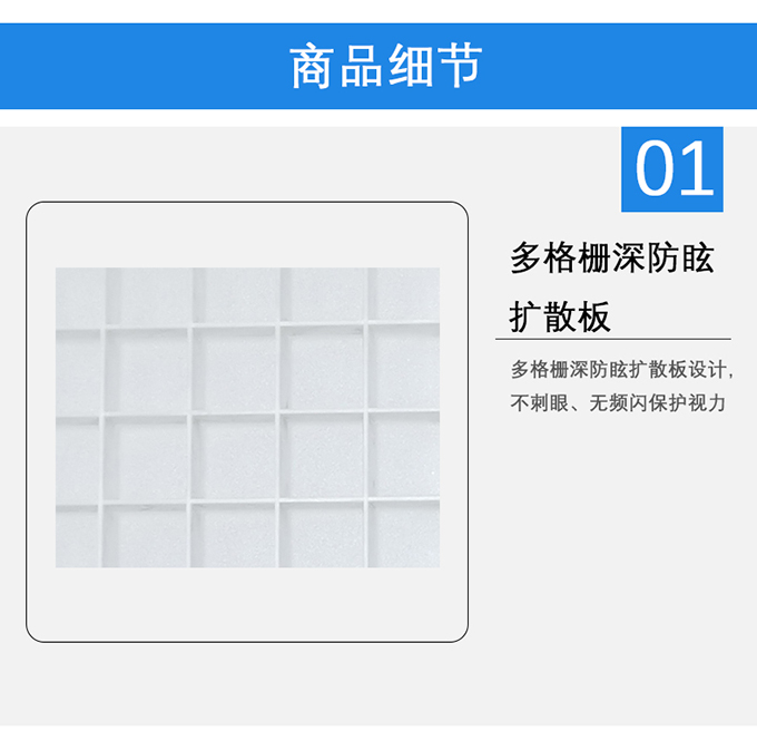 1.多格柵深防眩擴(kuò)散板設(shè)計,不刺眼、無頻閃保護(hù)視力