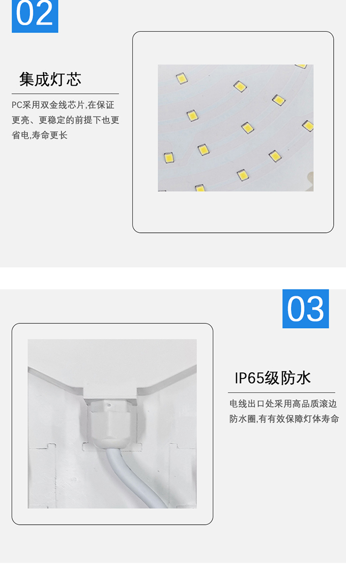 3.集成燈芯PC采用雙金線芯片,在保證更亮、更穩(wěn)定的前提下也更省電,壽命更長(zhǎng)