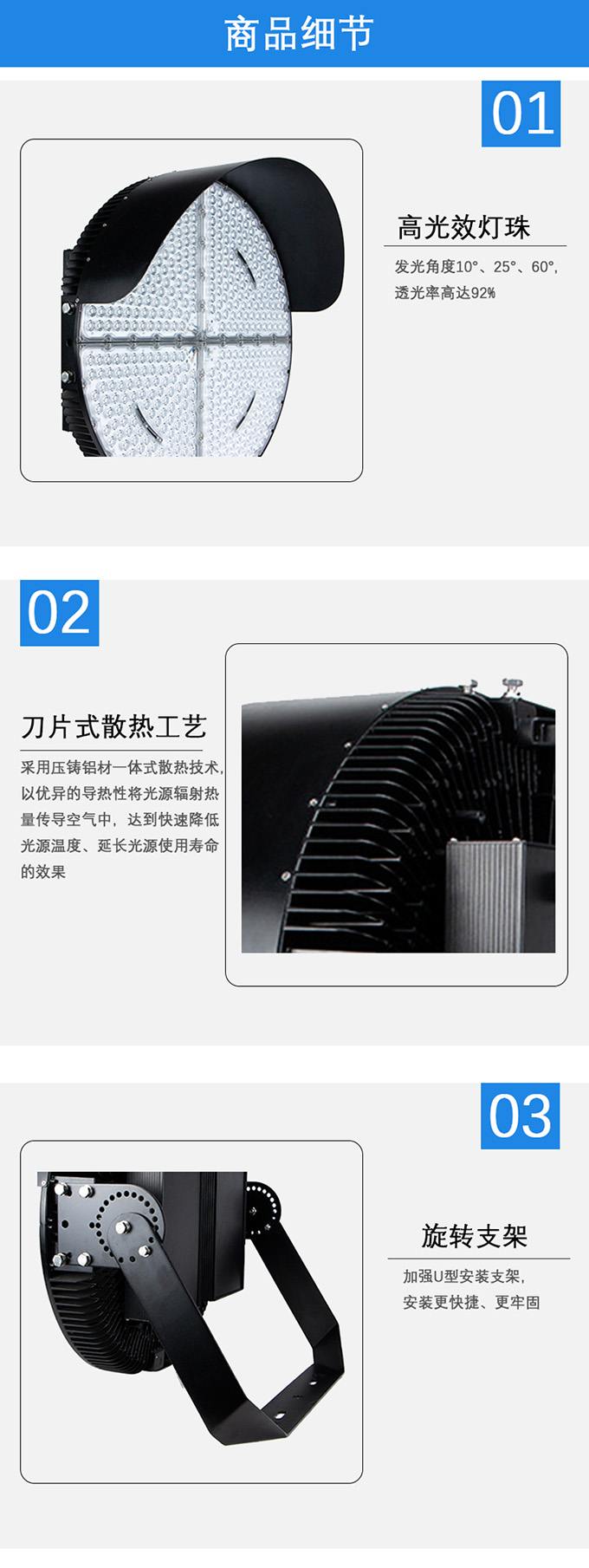 1.發(fā)光角度10°、25°、60°,透光率高達92%。