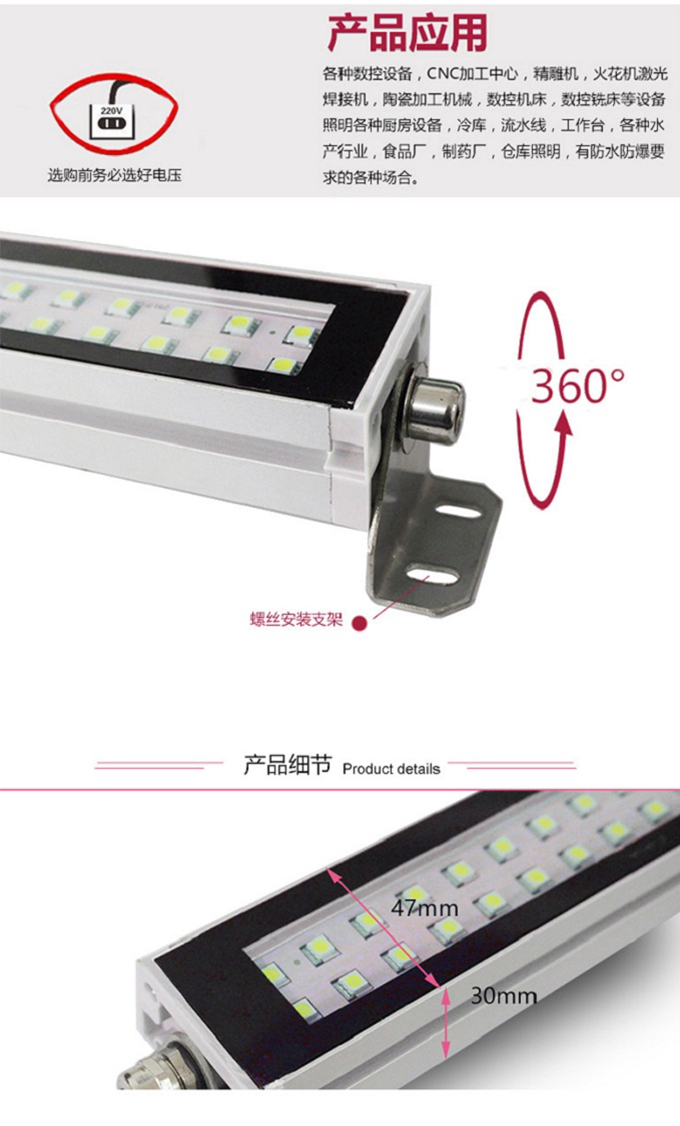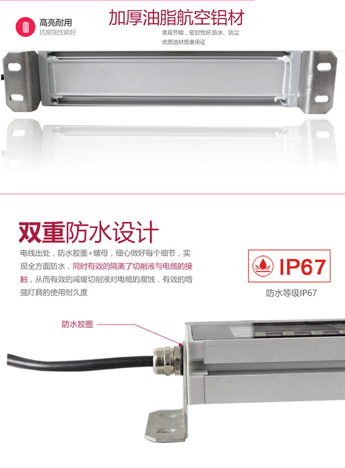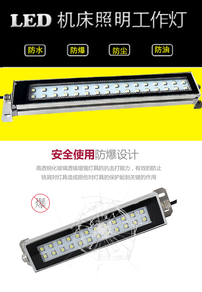 - 產(chǎn)品簡(jiǎn)介:三防機(jī)床工作燈特點(diǎn): 1.采用一體化鋁合金型材結(jié)構(gòu),防水膠條,防水,防水性能好 2.精工鋼化玻璃等部件有機(jī)結(jié)合,把防水,散熱與外觀高度統(tǒng)一 3.機(jī)床工作燈采用晶元進(jìn)口2835燈珠,體積小.熱阻低、導(dǎo)熱性能好、,低光衰 4.外殼采用精車氧化鋁,散熱好,耐腐蝕,結(jié)構(gòu)堅(jiān)固,簡(jiǎn)潔大方,,安裝方便 5.防護(hù)等級(jí)高IP65