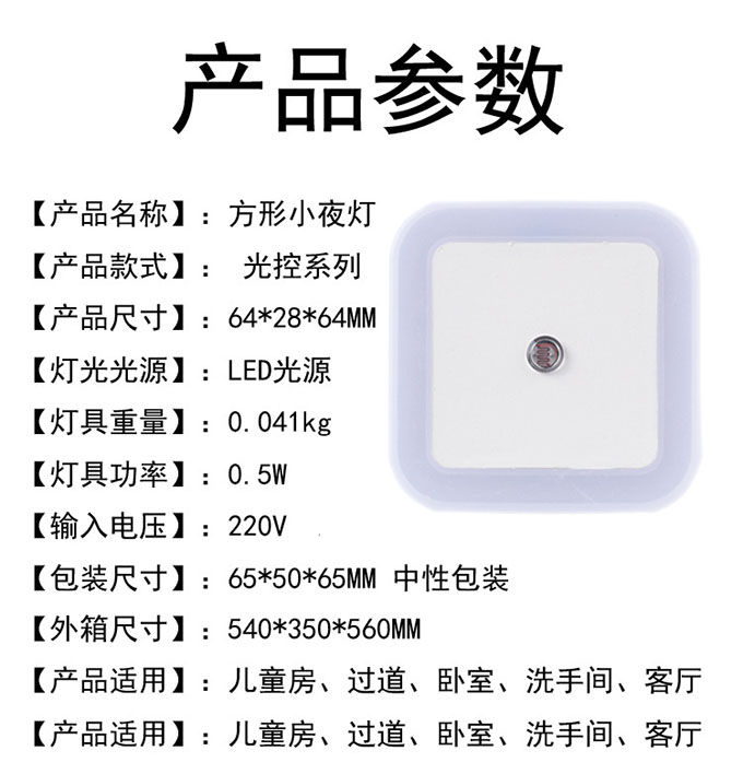 * 表示必填采購(gòu):光控感應(yīng)方形小夜燈