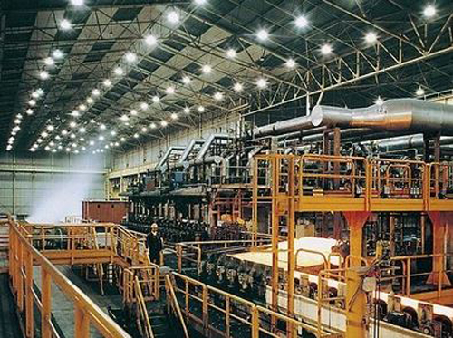 連鑄工藝是在煉鋼主廠房內(nèi)完成的,此處燈具安裝方式一般為頂棚吊裝或吸壁安裝于廠房鋼結(jié)構(gòu)柱。連鑄區(qū)域因?yàn)榄h(huán)境溫度高,燈具散熱性能必須好。在此處推薦使用PF01(250-400W)系列燈具側(cè)壁安裝或者PG01系列燈具(250W-400W)懸掛安裝,尤其推薦使用壁裝安裝(中間區(qū)域溫度遠(yuǎn)高于兩側(cè)區(qū)域)。和連鑄環(huán)節(jié)相類似的區(qū)域有軋鋼冷床區(qū)域、加熱爐區(qū)域。這些區(qū)域均為高溫區(qū)域,燈具必須散熱性能優(yōu)良。