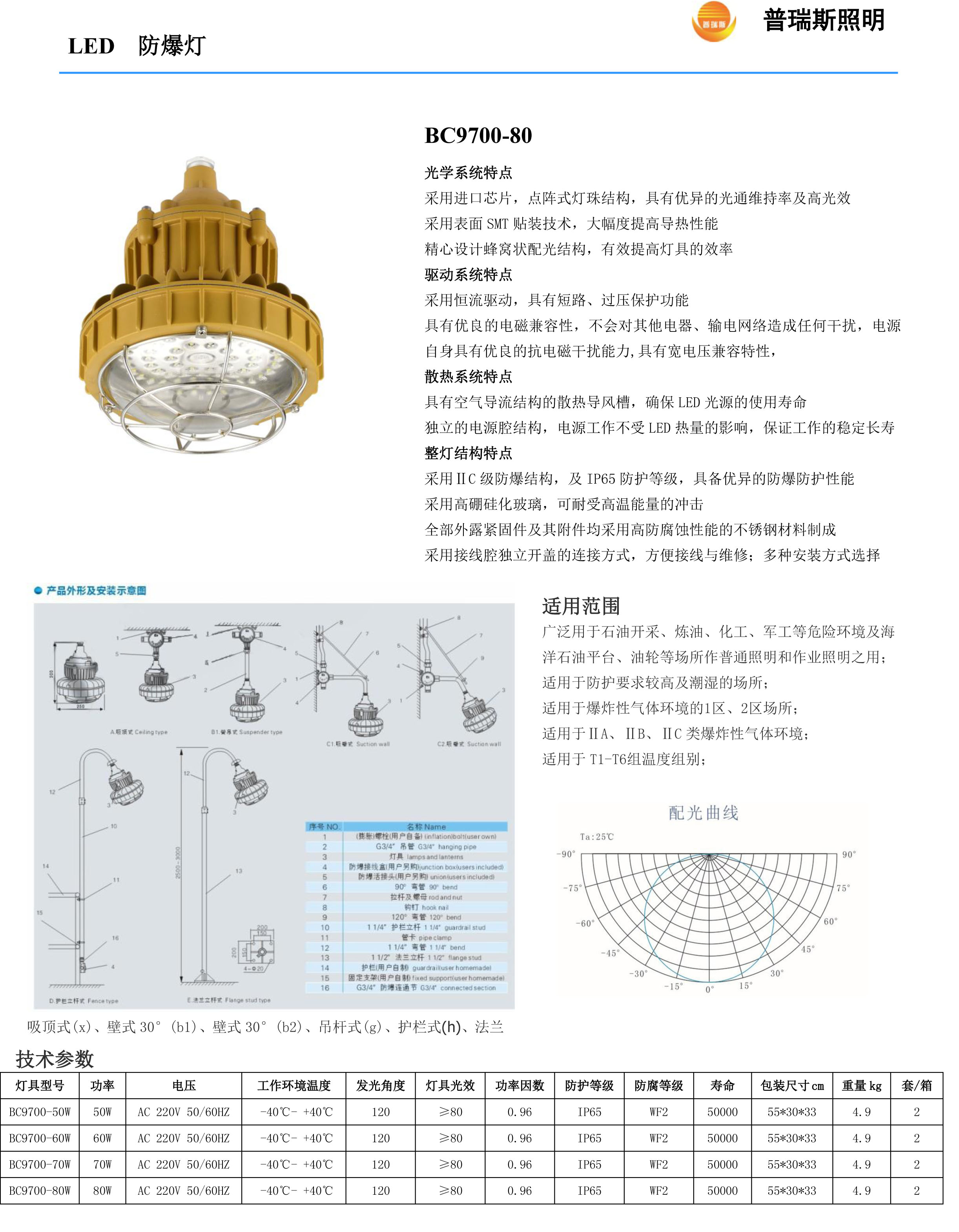 普瑞斯LED防爆工礦燈是防爆燈的一種,其原理同防爆燈相同,只不過光源是LED光源,是指為了防止點(diǎn)燃周圍爆炸性混合物如爆炸性氣體環(huán)境、爆炸性粉塵環(huán)境、瓦斯氣體等而采取的各種特定措施的燈具。